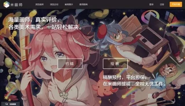 戰(zhàn)的。米畫師為畫師們提供了一個有保障的兼職平臺,通過互聯(lián)網(wǎng)約稿,讓三四線城市的繪畫愛好者有機會與大城市的畫師站在同樣的高度;也讓企劃方可以快速的